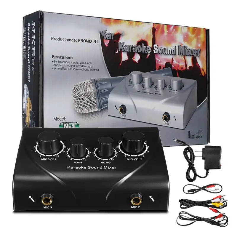 1 x звуковой Миксер для караоке 1 x адаптер питания US plug 1 комплект аудио кабель 1 комплект видео кабель Руководство пользователя-1 шт.;