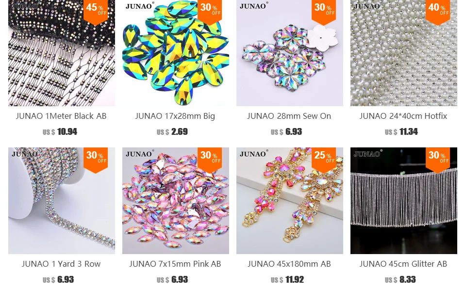 JUNAO 10 ярдов прозрачные стразы для шитья, хрустальные стразы для украшения