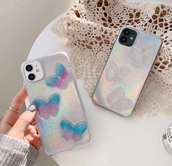 Чехол для телефона Gimfun с разноцветными лазерными бабочками для IPhone 11 Pro Max XS Max XR X 7 8 Plus, прозрачный синий блестящий мягкий чехол из ТПУ