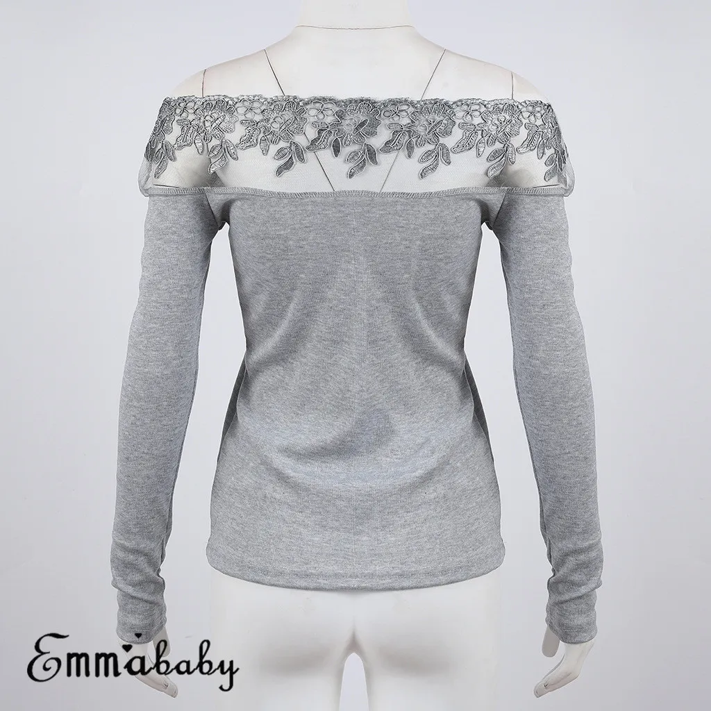 Новинка, модная женская футболка, топы с длинным рукавом, рубашка с открытыми плечами, жемчужные цветы, блузка, топы