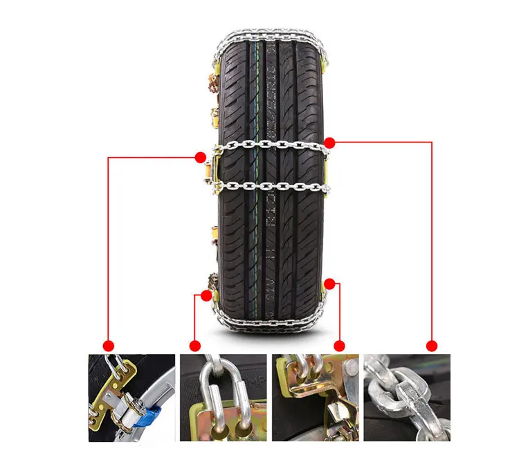 1. Подходит для погоды, такой как снег и град 2. Рекомендуется установить 5 цепей снега на одну шину. 3. Обратите внимание, что уплотнительная прокладка из ТПУ прикреплена к покрышке с одного конца, и стяжная Пряжка из сплава не обращена к покрышке. 4. Данные по шинам на 155-185. Рекомендуется выбирать S. 5. Данные по шинам на 195-235. Рекомендуется выбирать М. 6. Данные о шинах 245-285, рекомендуется выбрать L
