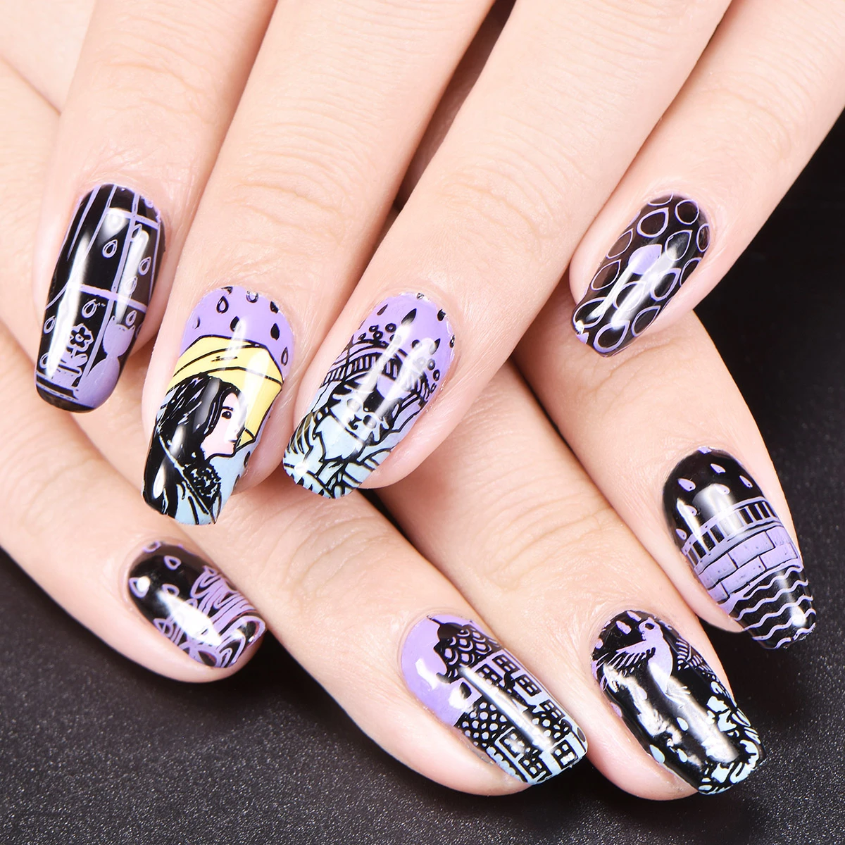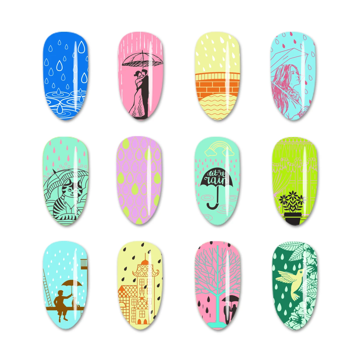 Красивые штамповочные пластины для ногтей, прямоугольные рисунки с изображением животных и зонтов, трафареты для ногтей, шаблон для дизайна ногтей, XL-059