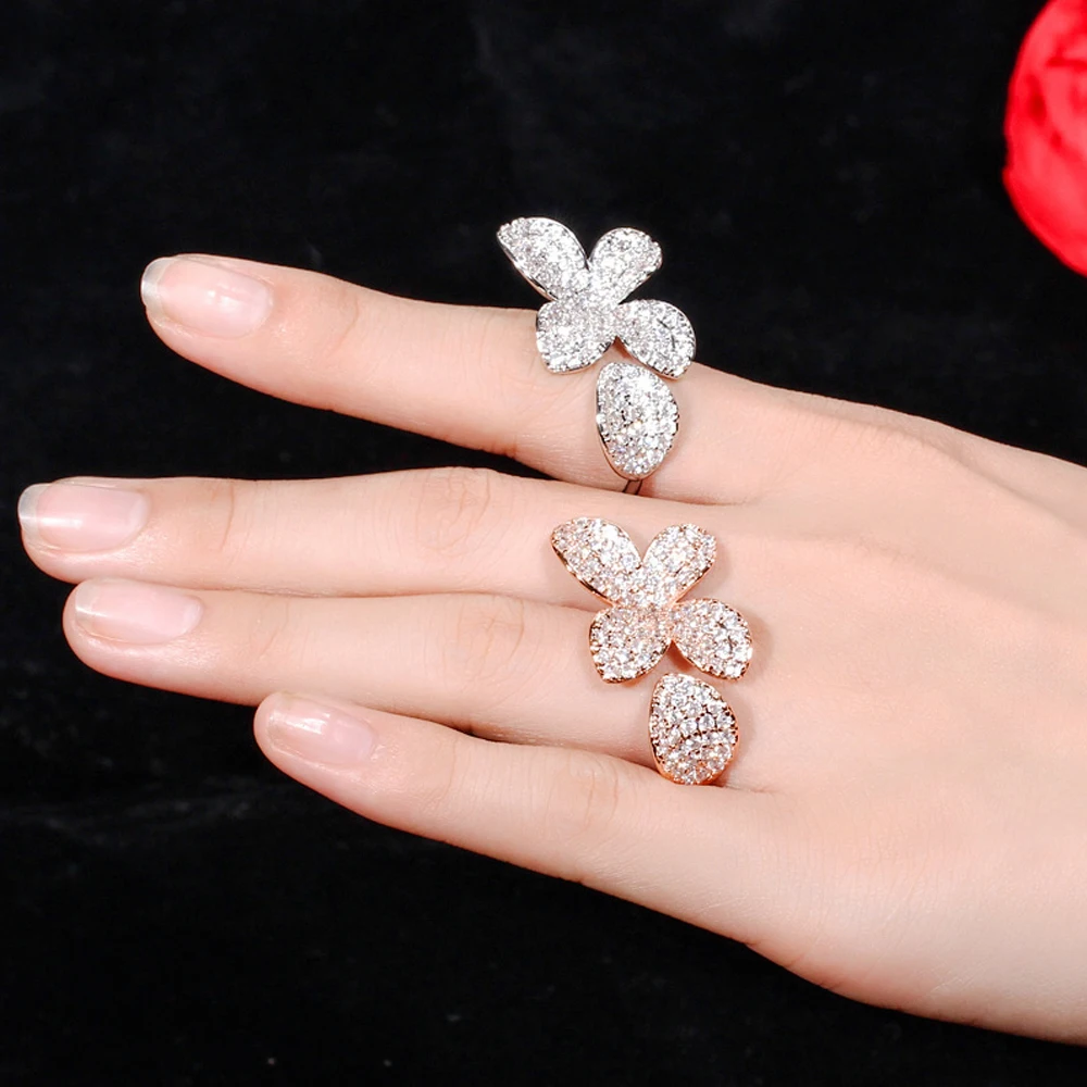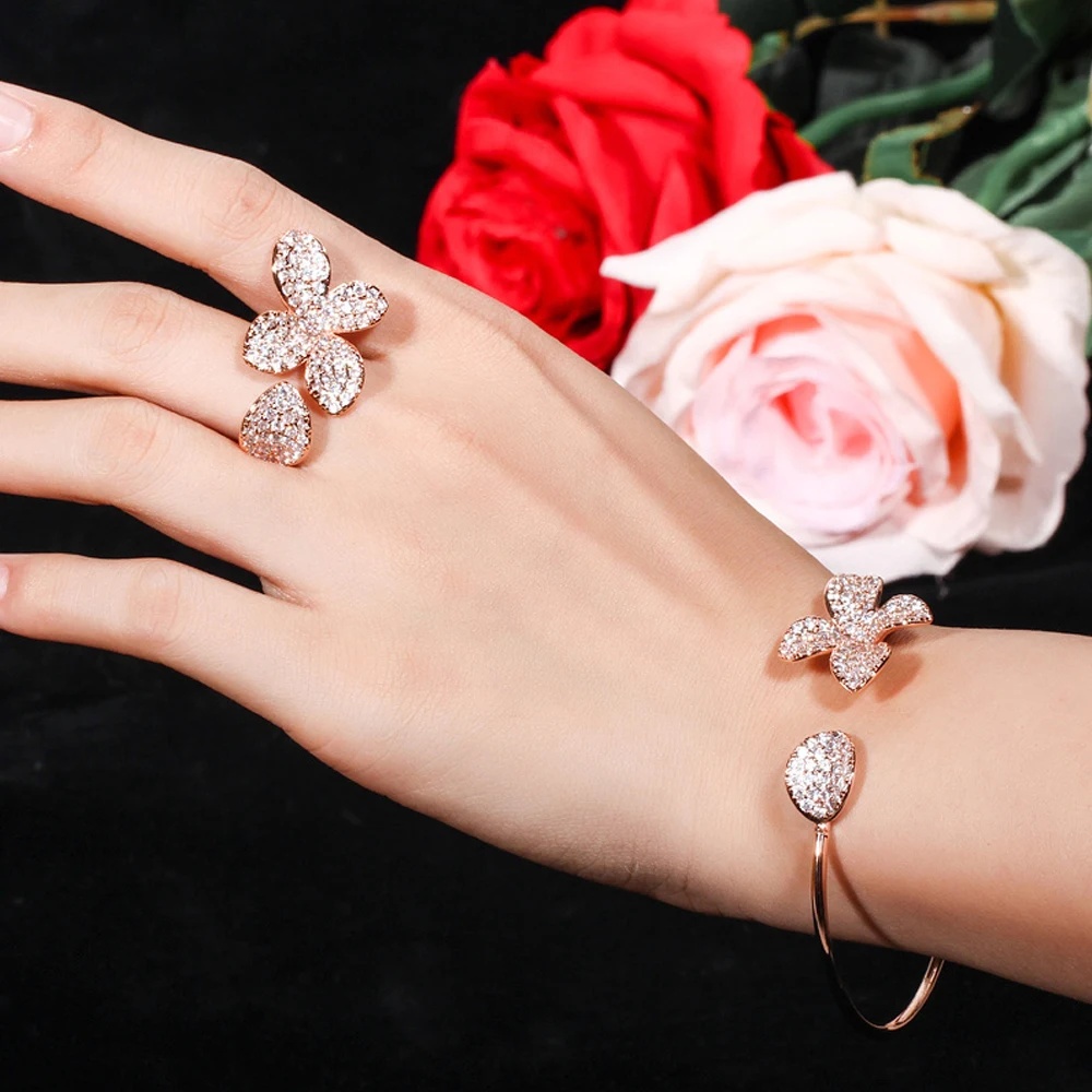 ThreeGraces Блестящий кубический цирконий микро цветок Запонки Открытый регулируемый браслет кольцо наборы для женщин Свадебная вечеринка ювелирные изделия JS208