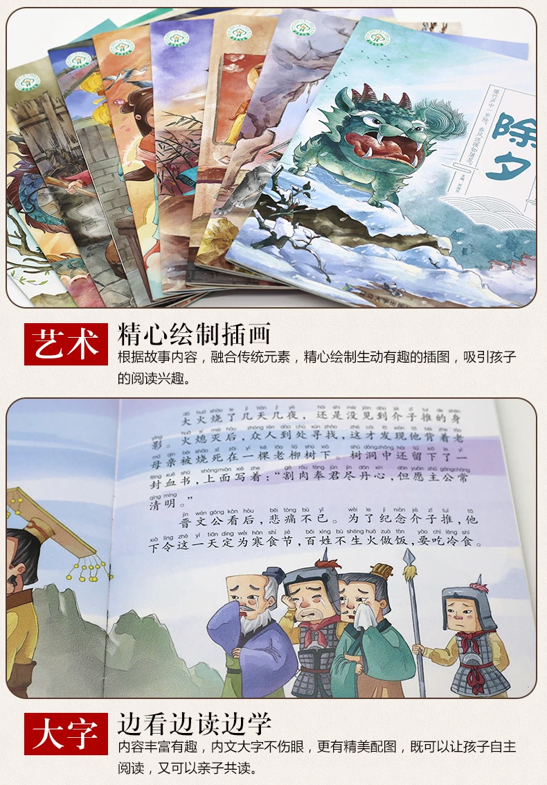 10pcs/set Chinese traditional festival picture book Comic strip learn to chinese Lantern/Ching Ming /Mid-Autumn Festival origins