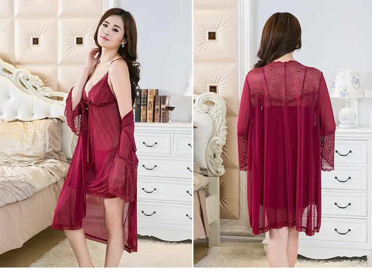 Комплект ночного белья включает: Ночное платье + халат + стринги