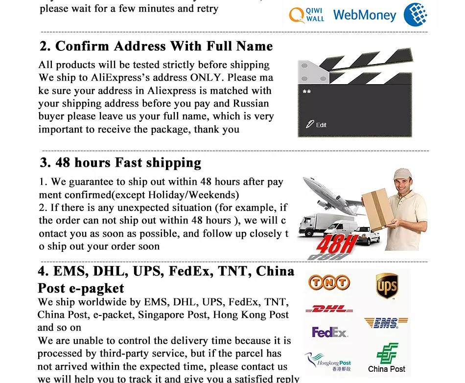 Покупка Примечания: 1. Цвет подарка будет отправлен случайным образом, в зависимости от наличия товара на складе. 2. Мы отправим товар в течение 48 часов после оплаты. 3. Все наши продукты были проверены после выхода с фабрики. Если возникнут какие-либо проблемы, связанные с доставкой, пожалуйста, свяжитесь с нами как можно скорее. Мы поможем вам их решить. 4. Если у вас есть какие-либо вопросы, пожалуйста, свяжитесь с нами, мы ответим вам как можно скорее.