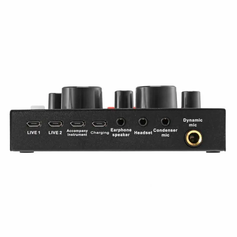 Особенности: 1. Звуковая микросхема AP8048A: двухъядерный структура, самая высокая рабочая частота может достигать 368,64 МГц. 2. Он имеет 64 км данных SRAM и 48 эффективных наборов инструкций DSP. Он подходит для всех видов сложного аудио-алгоритма обработки. 3. 12 видов звуковых эффектов, 12 видов аудио, два телефона в прямом эфире подключение, мобильный живой/Компьютерное сопровождение подключения, компьютер в прямом эфире/сопровождение подключения, K Запись песен подключение. Параметры: Система голосового тракта: двойной канал Частота дискретизации на выходе: 32 кГц Выборки цифра: 16bit Режим нескольких динамиков: 2,0 Аудиоинтерфейс: Интерфейс 3,5 мм Емкость аккумулятора: 1200 мАч Зарядка: 5 В/1 А Совместимость: WIN XP/7/8/10, для MAC и других систем. Размер звуковой карты: 125*105*35 мм/4,92*4,13*1,37'' Примечание: Пожалуйста, позвольте 1-3 мм отличается из-за ручного измерения. Из-за разного дисплея и разного света на картинке может не отображаться фактический цвет изделия. Спасибо за понимание. 1 x Микрофон 1 х Наушники 1 x емкость кабеля 2 x сопровождение кабели 1 х зарядный кабель 1 x держатель микрофона 1 x Алюминий коробка 1 х Руководство пользователя ![]()