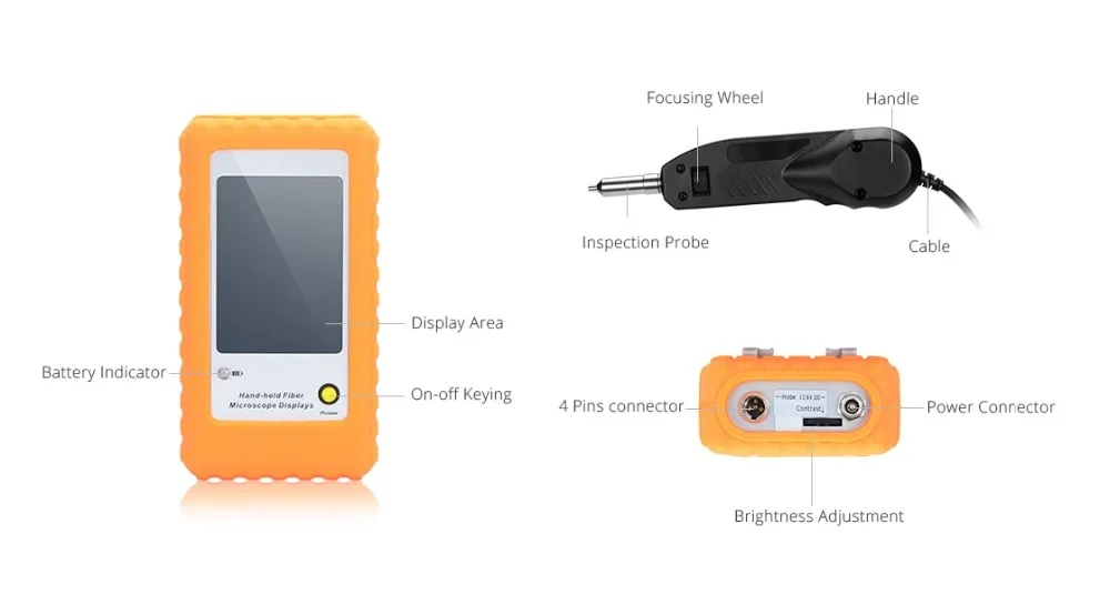 Концевая сторона оптоволоконного разъема имеет грязь или мелкие частицы, которые невидимы невооруженным глазом, что может привести к блокировке оптического сигнала, или привести отраженную волну к повреждению оптического волокна или даже повредить светильник, что нанесет значительный ущерб всей системе связи. Наконечник оптоволоконного соединителя должен быть проверен и очищен перед подключением оптоволоконного соединителя. Проверка концевой поверхности волокна является ключом к снижению расходов на техническое обслуживание, повышению эффективности устранения неполадок и обеспечению качества передачи. Этот продукт поставляется с 3,5 дюймового дисплея и диагональю 5 дюймов и 9-дюймовый дисплейный является необязательным. Пожалуйста, приобретайте его в соответствии с вашими потребностями. По умолчанию 3,5 дюймового дисплея. Пожалуйста, сообщите владельцу магазина, если у вас есть особые потребности.