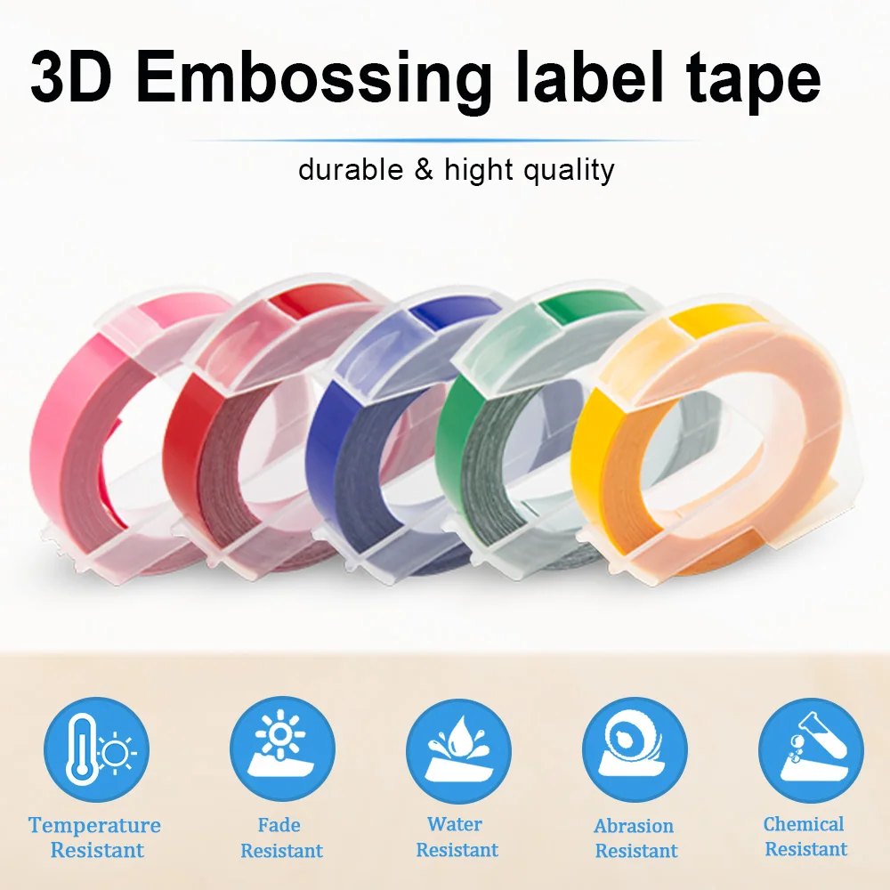 Описание продукта: Модель: Dymo 3D: тиснение этикеточной ленты Материал: ПВХ Размер: 9 мм x 3 м Цвет: смешанный цвет Посылка: 10 шт.
