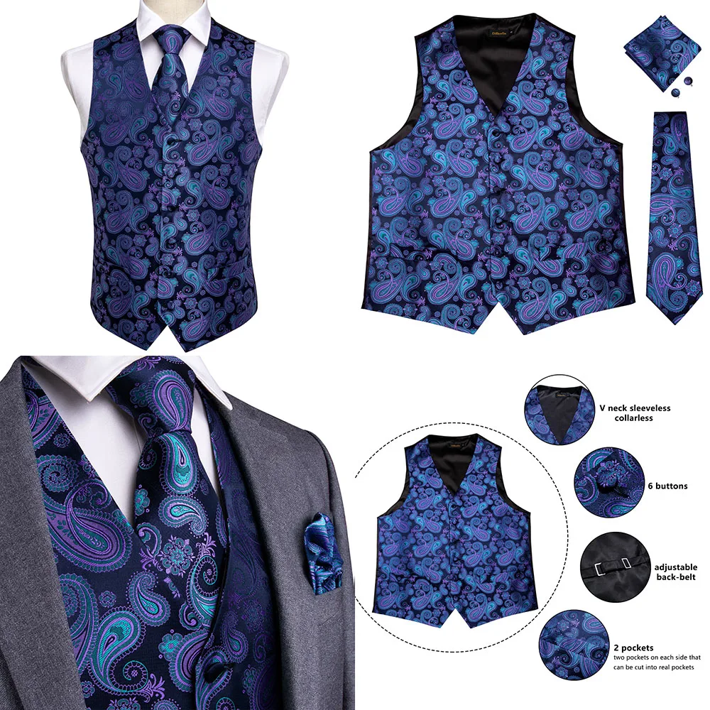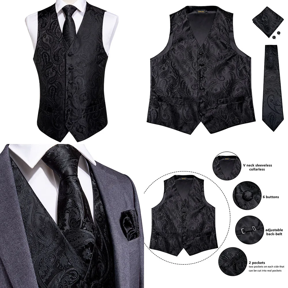 DiBanGu красный черный Пейсли модные свадебные мужские 100% шелковые поясаOat жилет Галстуки Hanky запонки набор галстуков для костюма смокинг MJTZ-106