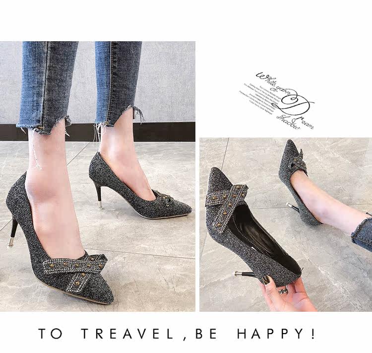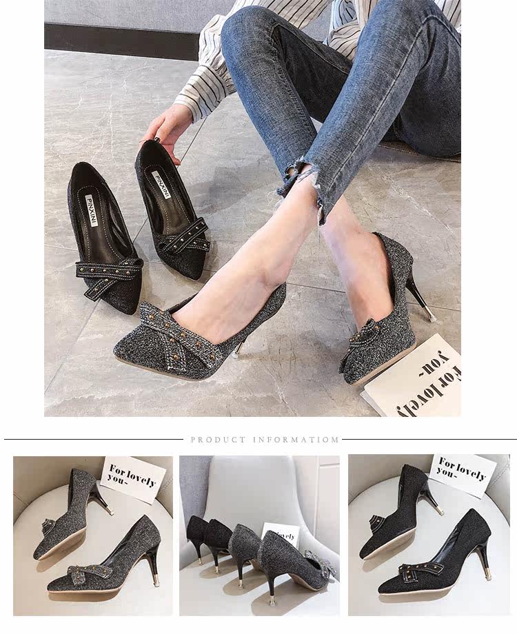 Лидер продаж Блестящий глиттер насосы женская обувь Острый носок шпильки
