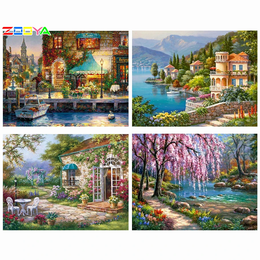 ZOOYA, круглая Алмазная картина, наклейка на стену, алмазная вышивка, Цветочный дом, 5D, сделай сам, фотографии страз, наборы для вышивки крестом R1669