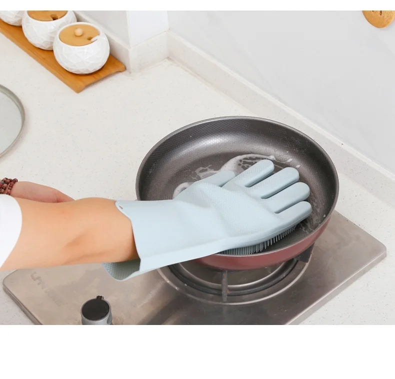 Незаменимые в вашей кухне многофункциональные силиконовые перчатки с Скруббером для мытья идеально подходят в качестве кухонного инструмента для очистки.