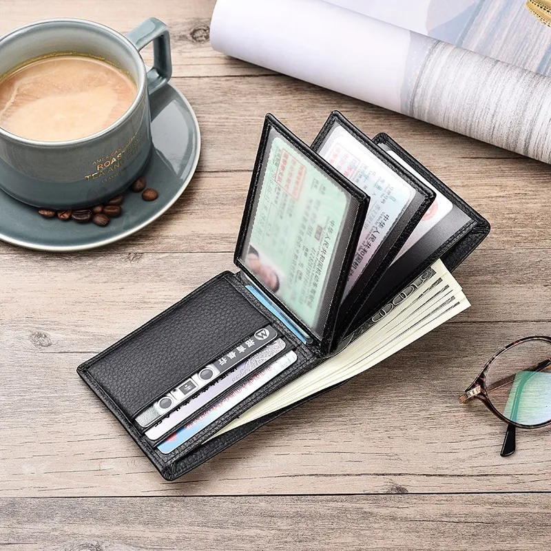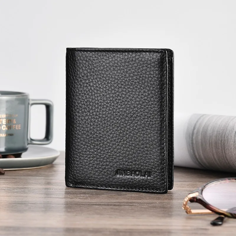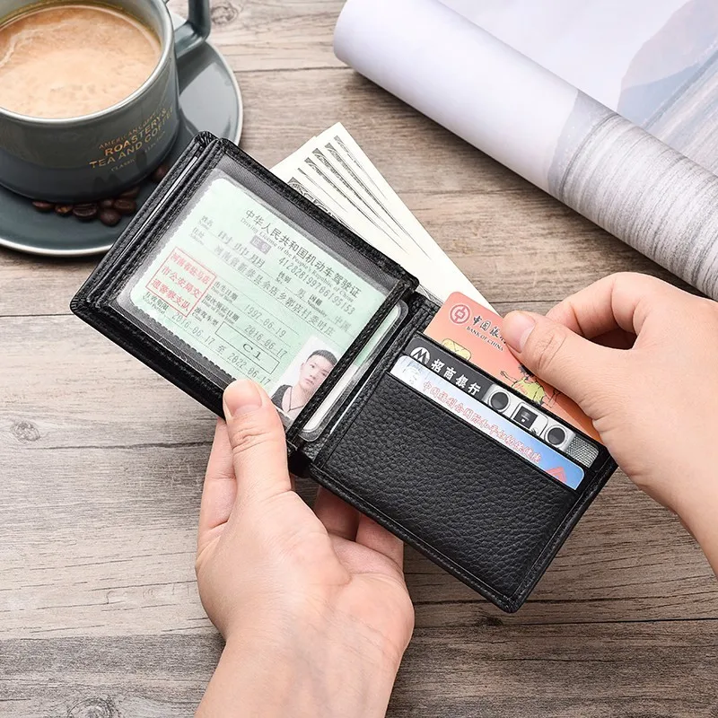 Роскошный кошелек из 100% натуральной кожи, модный короткий двойной мужской кошелек, повседневный однотонный мужской кошелек с карманом для монет, мужские кошельки