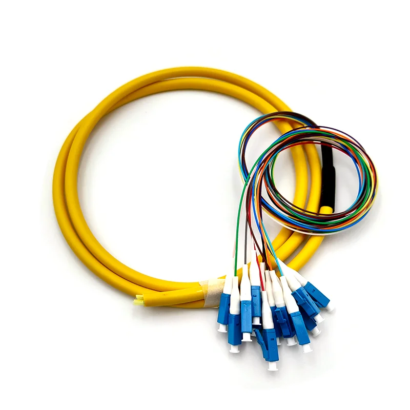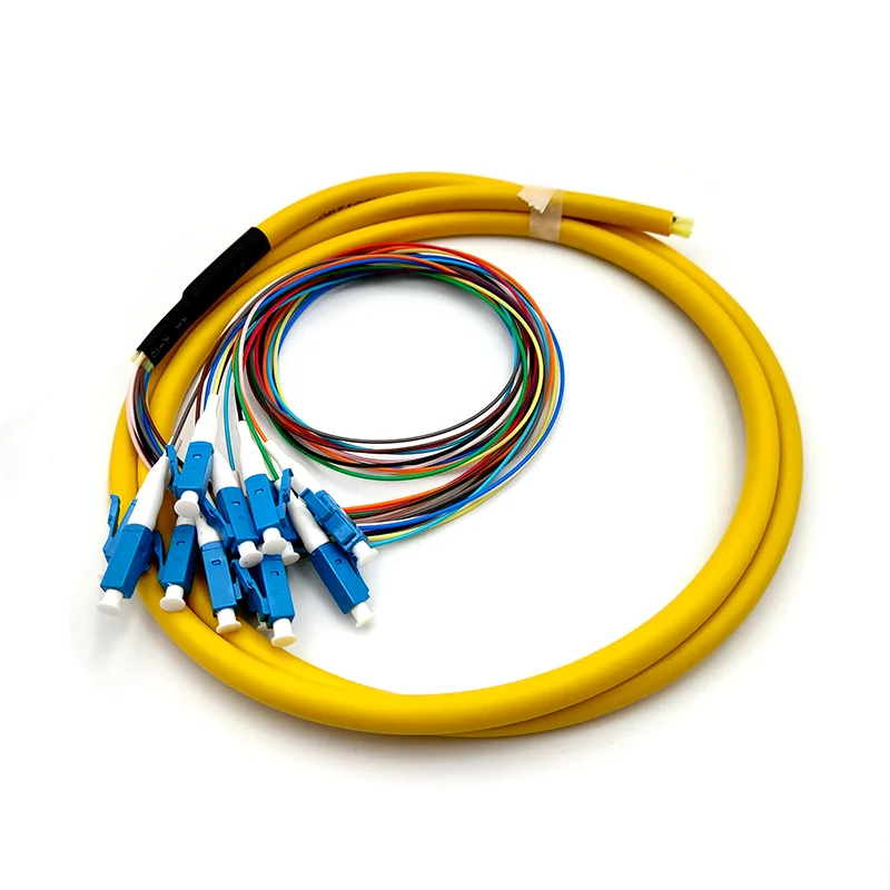 12 ядер LC/UPC одномодовый волоконно-оптический свиной хвостВолоконный свиной хвост-это одно, короткое, обычно плотное буферное, оптическое волокно, которое имеет оптический соединитель, предварительно установленный на одном конце, и длину открытого волокна на другом конце.Кончик хвоста разделен и сплавлен на одно волокно из многоволоконного туловища. Сращивание косичек к каждому волокну в багажнике «разбивает» многоволоконный кабель в его компонентные волокна для подключения к конечному оборудованию.Косички могут иметь женские или мужские разъемы. Гнездовые соединители могут быть установлены в коммутационной панели, часто в парах, хотя существуют одно-волоконные решения, чтобы они могли быть подключены к конечным точкам или другим волокнам работает с патч-волокнами. Кроме того, они могут иметь разъемы и подключаться непосредственно к оптическому трансиверу.Спецификация:Разъем: FCДлина волны: 1310/1550 нмПотеря вставки: ≤ 0,3 дБПотеря возврата: ≥ 50 дБВибрация: ≤ 0,2 дБЦвет: желтыйОсновной материал: стеклянный сердечникДиаметр сердечника: 62,2 +/-2.5мкмДиаметр упаковки: 125,0 +/-0,7мкмТип волокна: SMДлина: 1,5 м или по индивидуальному заказу доступны