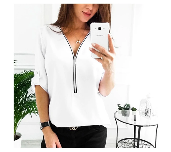 Женская блузка с V образным вырезом однотонная Свободная Повседневная Блузка