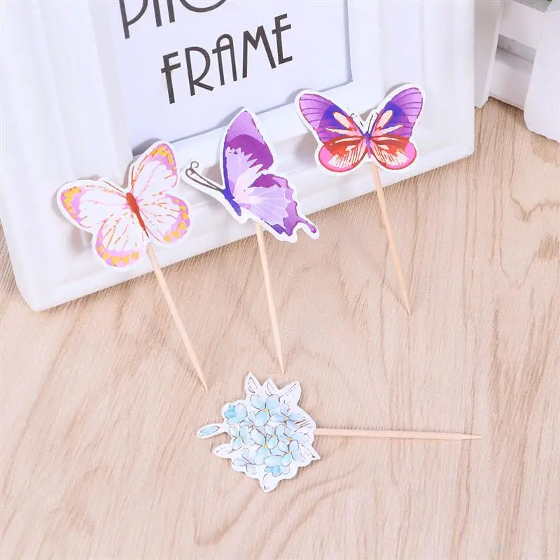 24 шт., бумажные наклейки для кексов с милыми бабочками и цветочным узором, Декорации для торта, для десертного магазина, дня рождения, вечеринки, детского душа