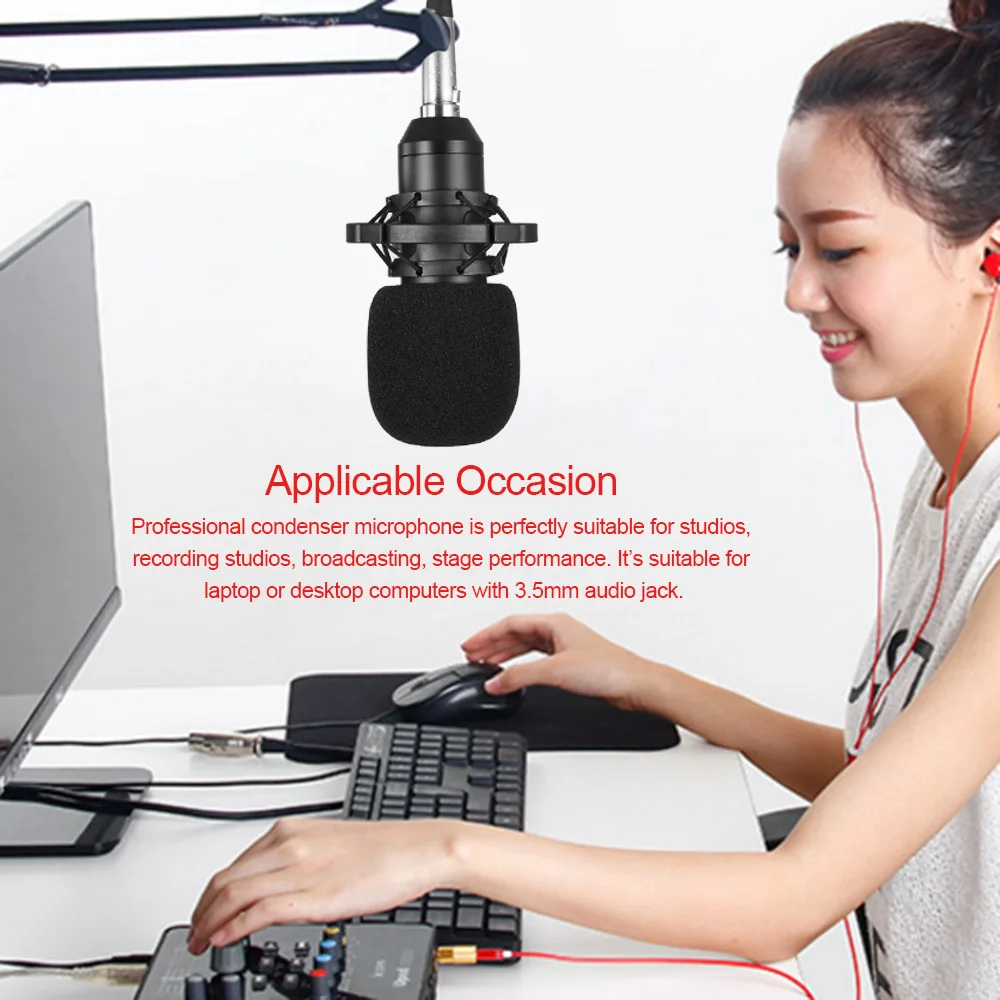 Профессиональный конденсаторный микрофон идеально подходит для студий, студий записи, вещания, сцены. Подходит для ноутбуков или настольных компьютеров с Аудиоразъемом 3,5 мм.