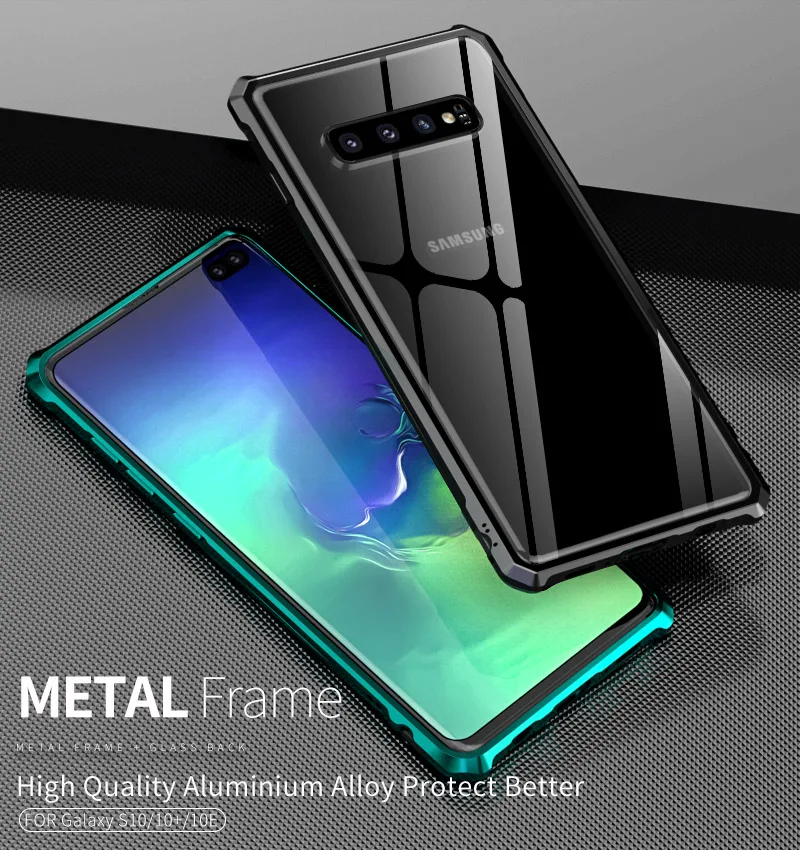 Металлический бампер из сплава и прозрачное закаленное стекло задняя крышка для Samsung Galaxy S10/S10 Plus/S10e