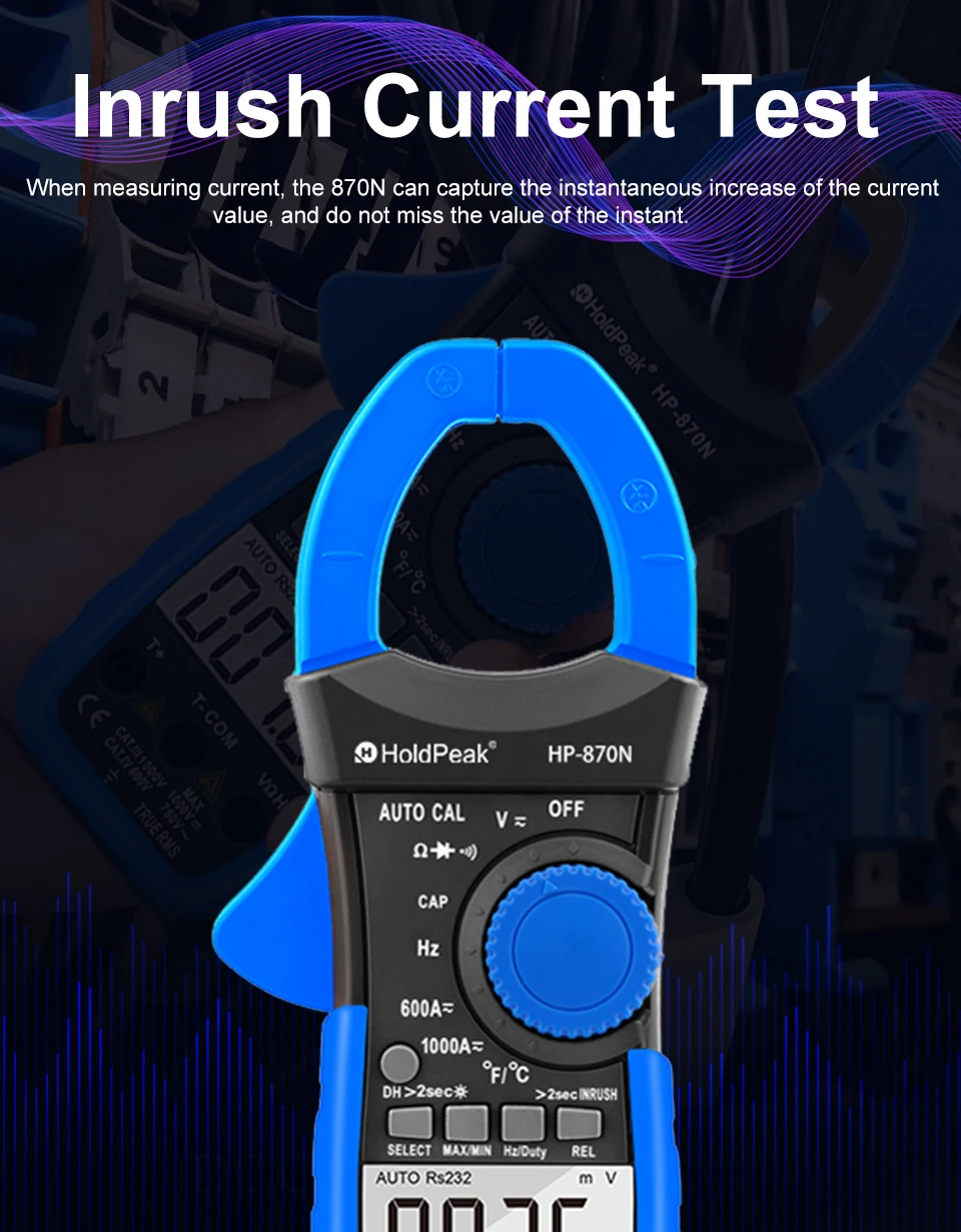 Автоматический мультиметр-хомут с током переменного/постоянного тока, напряжением переменного/постоянного тока, сопротивлением, емкостью, температурой, частотой, диодным тестом, тестом на непрерывность, тестом на входной ток, относительным значением Отверстие щели измеряет ток переменного тока в проводнике до 45 мм без прерывания цепи. Особенности удержания данных, максимальное/минимальное считывание, подсветка, удобный для чтения большой ЖК-дисплей. Поставляется с удобной сумкой для переноски-идеально подходит для использования в дороге. HP-870N можно широко использовать в домашних условиях, в школе, плавке, коммуникациях, производстве, нефтеперерабатывающей промышленности, национальной обороне, электроэнергетике и химической промышленности и т. Д.