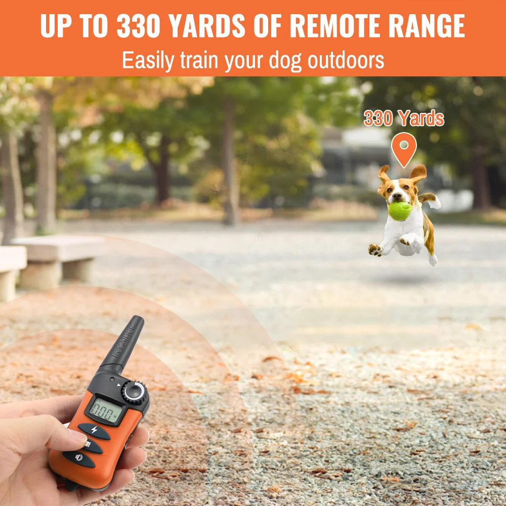 Система помогает контролировать вашу собаку без поводка в диапазоне до 330 ярдов! Мгновенно отправьте сигнал с пульта дистанционного управления, который активирует ошейник вашей собаки.