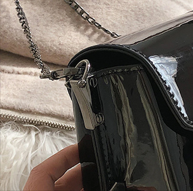 Женская Блестящая сумка-мессенджер из искусственной кожи с заклепками и цепочкой, новинка 2019