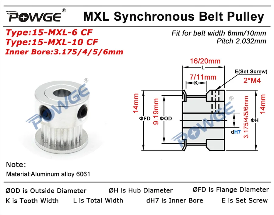 (В15 зубьевMXL шкивы имеют диаметр отверстия3,175/4/5/6 мм)