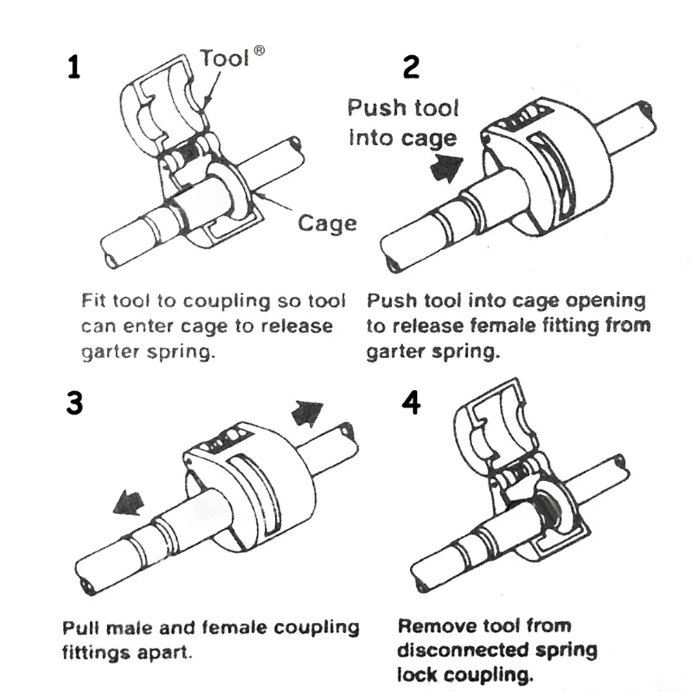 2. Инструмент для отключения предназначен для быстрого подключения топливных соединений. Работает на различных транспортных средствах и отдельных топливных линиях, не повреждая разъемы.