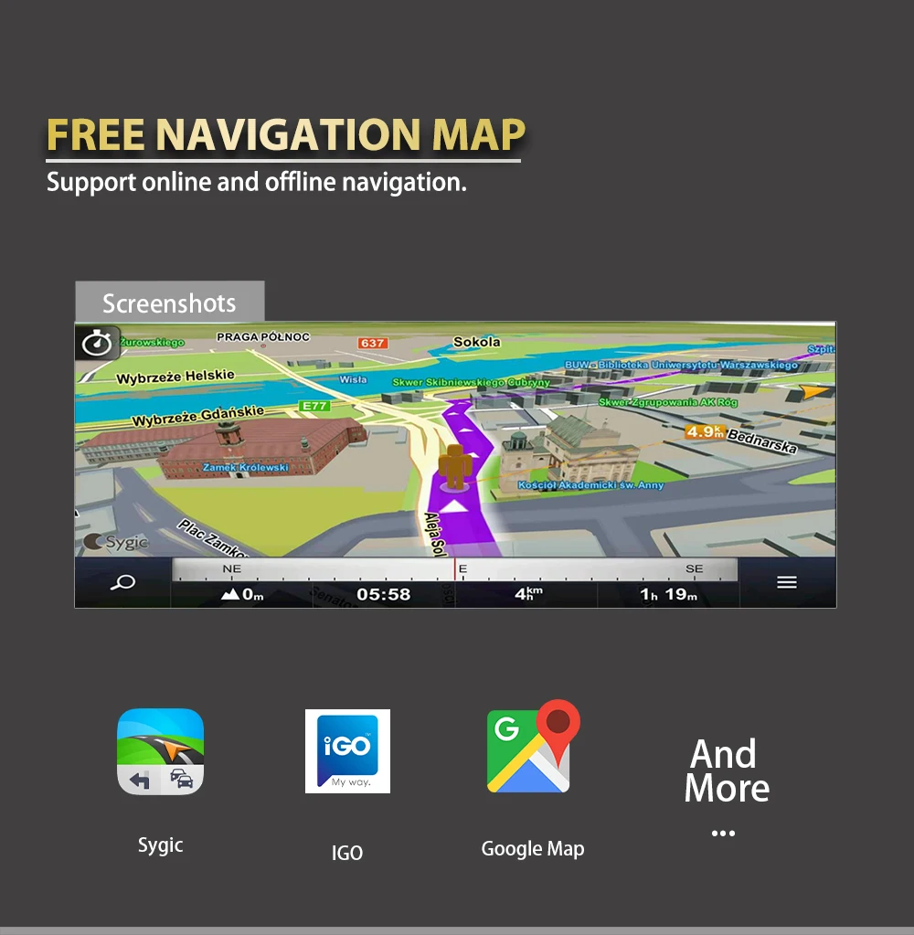 Встроенный высокочувствительный GPS приемник, поддержка 3D карты