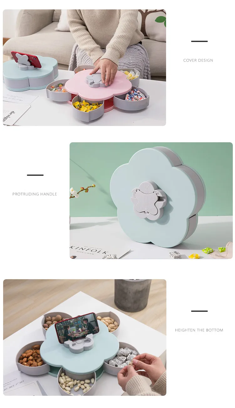 MYSTICA, новинка 2019, коробка для хранения конфет в форме лепестков цветов, креативный поворотный переключатель, органайзер для еды, чехол для хранения орехов, фруктов, дыни
