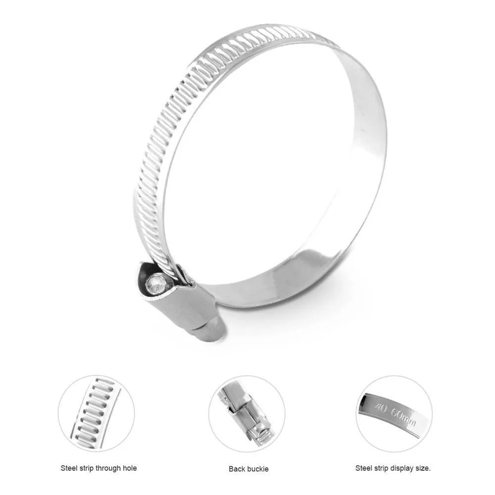 Этот хомут изготовлен из высококачественной нержавеющей стали для долговечности и длительного срока службы.