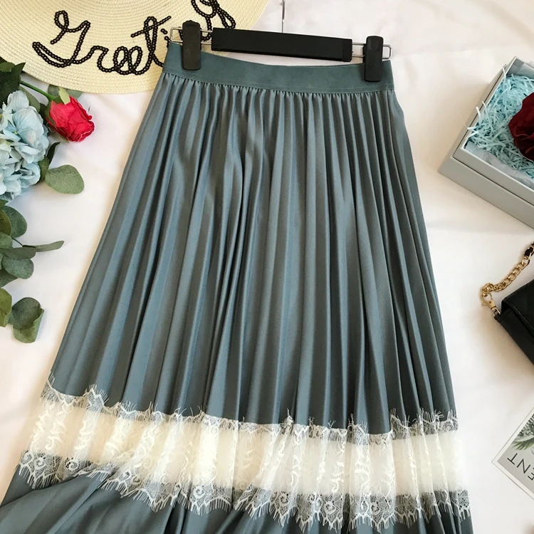 Женская плиссированная юбка до середины голени, длинная кружевная юбка с вырезами, весна-лето 2019US $15,6 Долларов США/шт