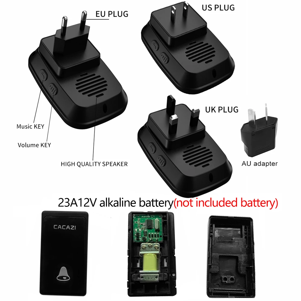 1. Нажмите кнопку, супер обучающий код может свободно научиться сочетать, может быть неограниченным подходящим приемником. 2. Если несколько кнопок соединены с одним или несколькими приемниками в одной системе, каждая кнопка может быть установлена на другой мелодии звонка. 3. Функция отключения памяти: Включите питание снова после выключения питания, не нужно повторно регулировать и блокировать мелодию звонка. 4. Вместо использования батареи, кнопка преобразует кинетическую энергию в электрическую и посылает сигнал при нажатии. 5. Передатчик может нормально работать в снежной или высокой температуре окружающей среды, водонепроницаемый и пыленепроницаемый. 6. Напряжение приемника составляет 220 В. 7. Приёмник находится на расстоянии 200 метров (в открытой местности), что может зависеть от окружающей среды и препятствий. 8. Привлекательная подсветка мигает, когда кто-то толкает дверной звонок. Особенно подходит для пожилых, глухих и беременных женщин. 9. Приемник имеет 58 мелодий на выбор, и громкость составляет 20-80 дБ в 4 уровнях. 10. Приемник имеет штепсельную вилку США, ЕС, Великобритании и адаптер австралии для большинства стран. 11. Просто подключите приемник к электрической розетке, кнопочный передатчик может быть приклеен к двери с помощью клейких лент. 12. Размер кнопки: 82*46*21 мм 13. Размер приемника: 95*65*24 мм Примечание: Кнопка не может быть размещена на железной двери, потому что это будет мешать сигналу. Если приемник не звонит при нажатии кнопки после получения дверного звонка, Пожалуйста, подключите дверной звонок.