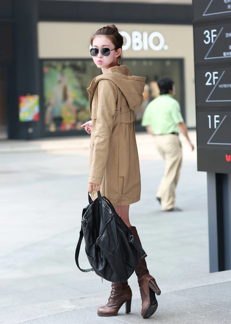 Женский Длинный Тренч с капюшоном нового размера плюс, весна-осень 2019, тонкая верхняя одежда, DF867