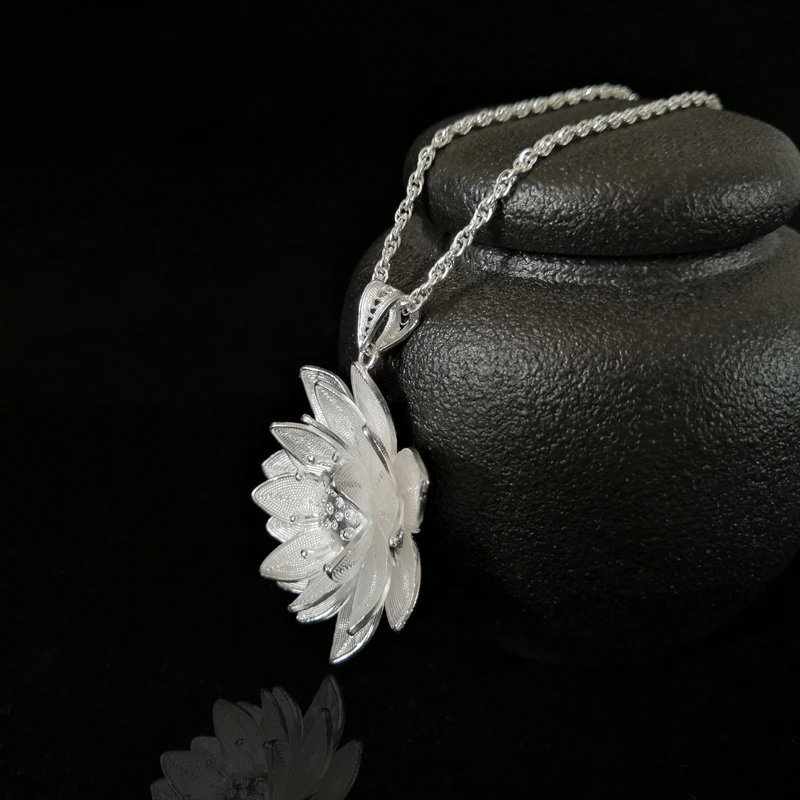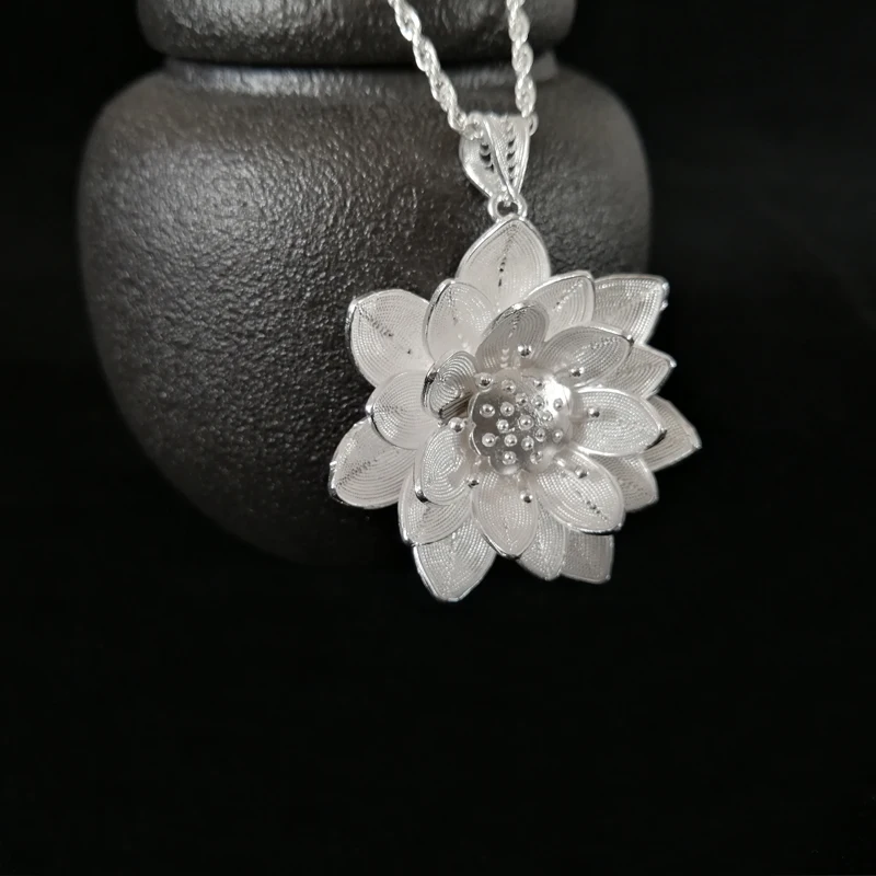 Ожерелье с подвеской в виде цветка лотоса из стерлингового серебра 999 пробы, Женские Подвески ручной работы, этнические Роскошные ювелирные изделия, новогодние подарки