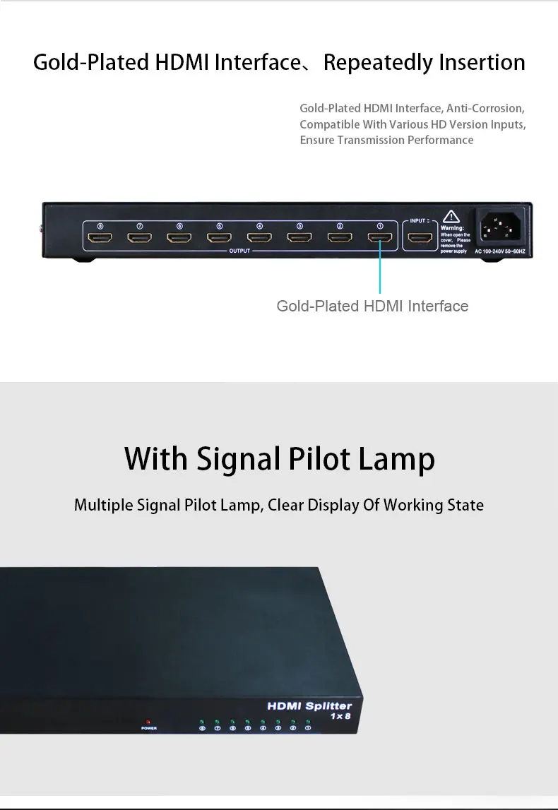 H1S8 1x8 HDML сплиттер 1 в 8 из HDML сплиттер аудио видео дистрибьютор Усилитель Поддержка Full HD 3D 1080P