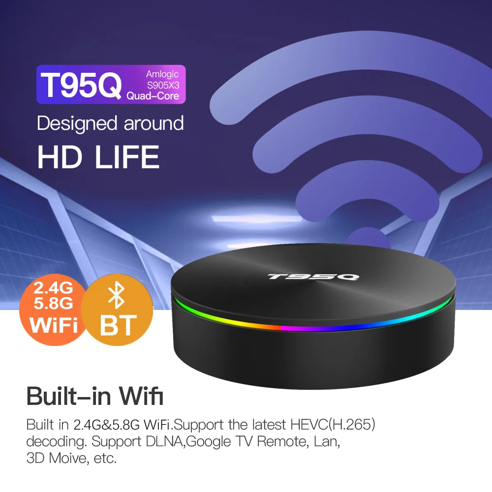 Обратите внимание: 2G16G-S905X2 Chipsat. Основные характеристики: -Четырехъядерный процессор Amlogic S905X3 ARM Cortex A53 -GPU: ARM Mali-G31MP -ОС: Android 9,0 -Память: DDR3 4 Гб, eMMC Flash 32 ГБ/64 ГБ -Поддержка HD: 8K @ 24fps, 4K @ 60fps, UHD, HDR, 3D -Поддержка HD 2,0, 1xUSB3.0, 1xUSB2.0 -Поддержка Gigabit Ethernet, 2,4G/5,8 GHz Dual Wifi, BT 4,0 -Поддержка обновления прошивки онлайн -Есть 3 варианта для T95Q: A: 2 ГБ + 16 ГБ + 2,4 и 5G двухъядерный процессор Wi-Fi + BT4.0 + 100 м B: 4 Гб + 32 ГБ + 2,4 и 5G двухъядерный процессор Wi-Fi + BT4.0 + 100 м C: 4 Гб + 64 ГБ + 2,4 и 5G двухъядерный процессор Wi-Fi + BT4.0 + 100 м Что в коробке? -1 коробка T95Q -1 пульт дистанционного управления -Источник питания-1 шт. -Кабель HD-1 шт. -Руководство пользователя-1 шт. Фотографии: