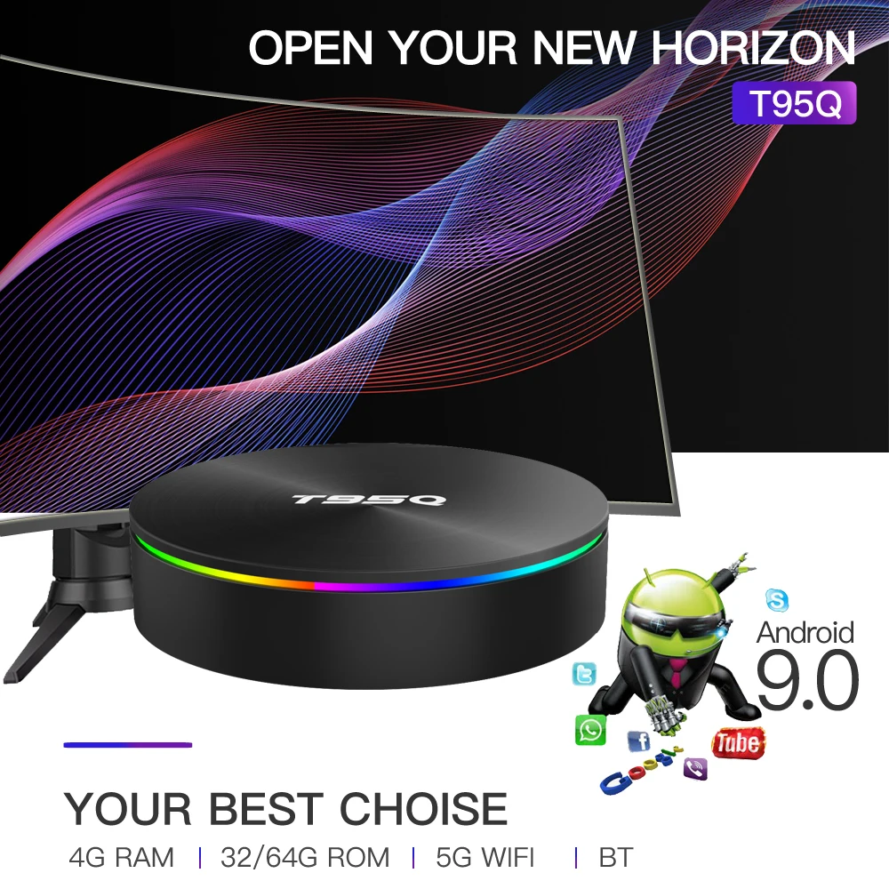 2020 Новый T95Q 4 Гб 64 ГБ Android 9,0 Смарт ТВ-бокс Amlogic S905X3 двойной Wifi медиаплеер