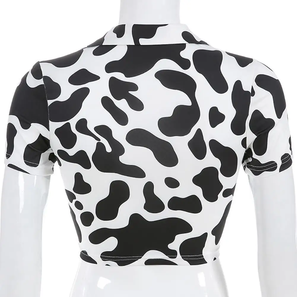 Женские Модные топы молочного коровьего цвета с принтом, полый круг, сексуальный укороченный топ, футболка с v-образным вырезом, короткая футболка, открытая летняя рубашка