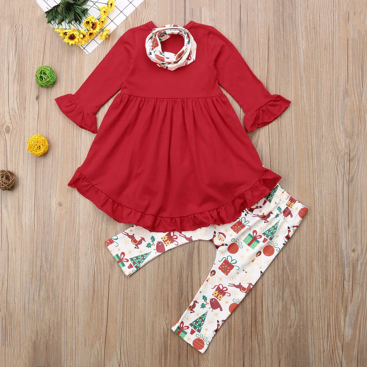 Новейшая модаДля малышейОдежда с цветочным рисунком для маленьких девочек! Высокое качество и абсолютно новый 100% Основной цвет: как на картинке Новинка в моде Материал:Смесь хлопкаОбратите внимание: если ваш ребенок пухленький, мы рекомендуем выбрать больший размер, спасибо.Просим перепроверять размеры детей, рост и полноту по размерной таблице перед покупкой/подачей заявки. Спасибо. Посылка включает в себя: 1 милое платье-топ, 1 штаны, 1 шарф Таблица размеров: