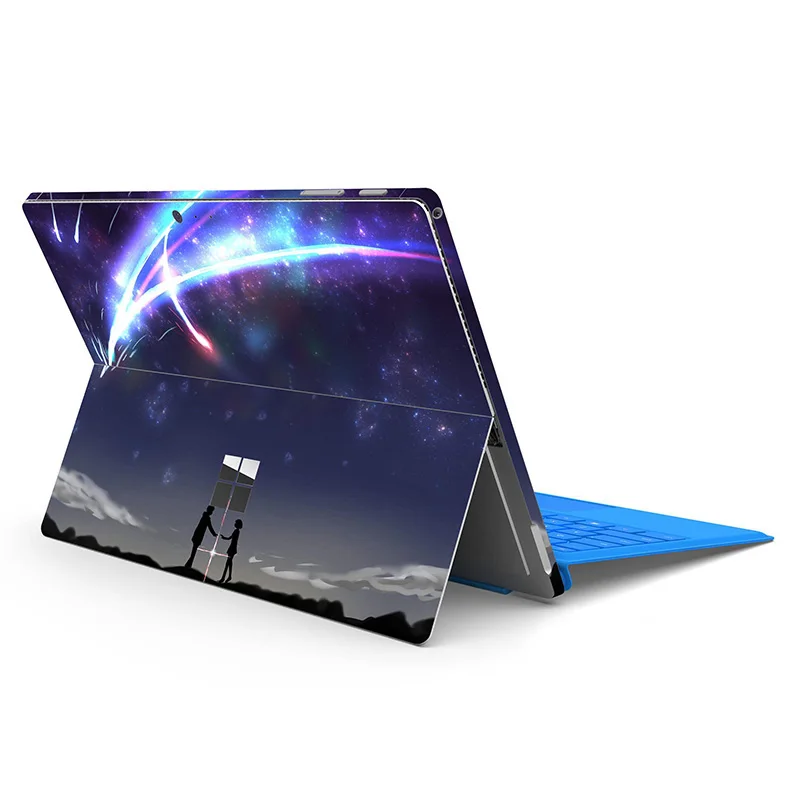 Эти наклейки предназначены для ноутбуков серии Microsoft surface pro. Полный набор наклеек содержит 3 штуки: наклейки спереди, снизу и по краям.