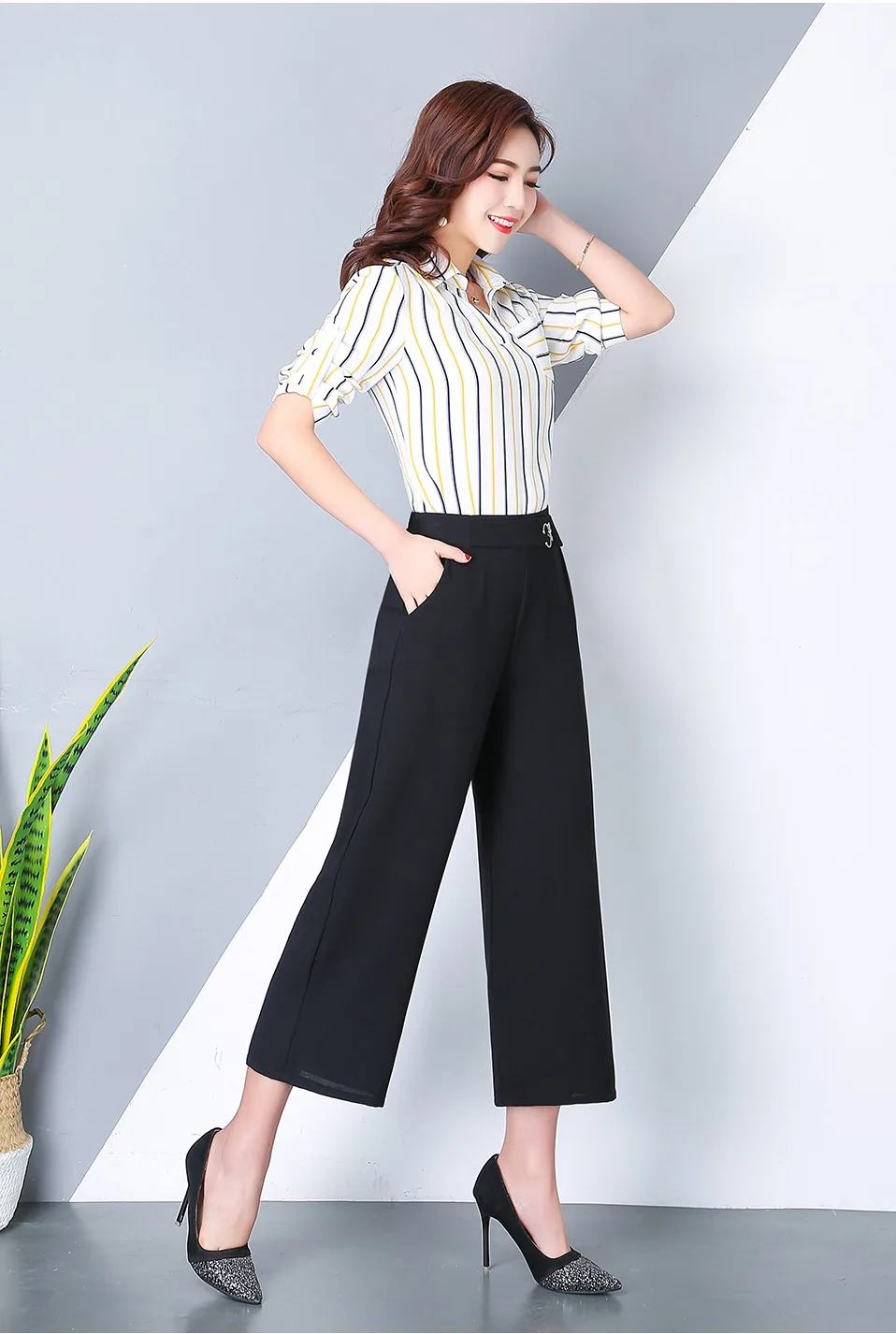 Брюки женские удобные эластичные с цветочным принтом на шнурке палаццо широкие