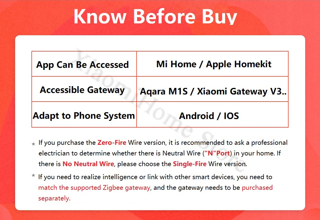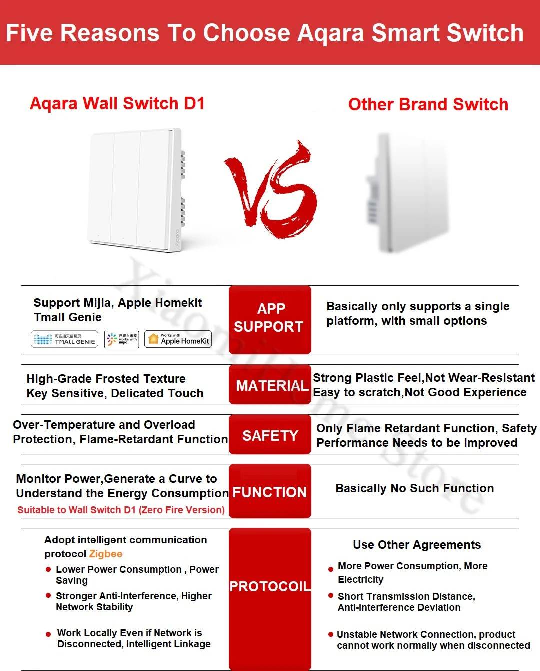 Характеристики переключателей Aqara D1 (Возьмите три клавиши в качестве примера)Нет нейтральныхОдин/двойной ключ максимум 800 ВтС нейтральнымОдин/двойной/три ключа максимум 2200 Вт