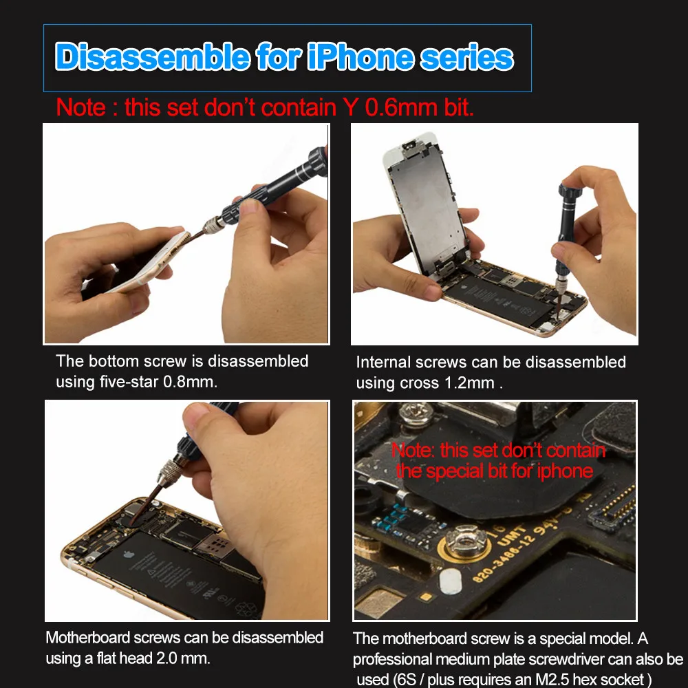 ● Профессиональная отвертка и набор инструментов для открытия. ● Простота в использовании и обращении. ● Отвертки с противоскользящей ручкой и магнитными наконечниками. ● Изготовлен из высококачественного материала, прочный и Высокоточный. ● Профессиональные инструменты для ремонта направлены на оказание помощи во время ремонта устройств. ● Идеально подходит для сохранения и обслуживания точной работы и оптических средств, таких как точные часы, мобильные телефоны, телевизоры, смартфоны, КПК, ПК и другие приложения. ● Инструменты разных размеров для всех нужд.