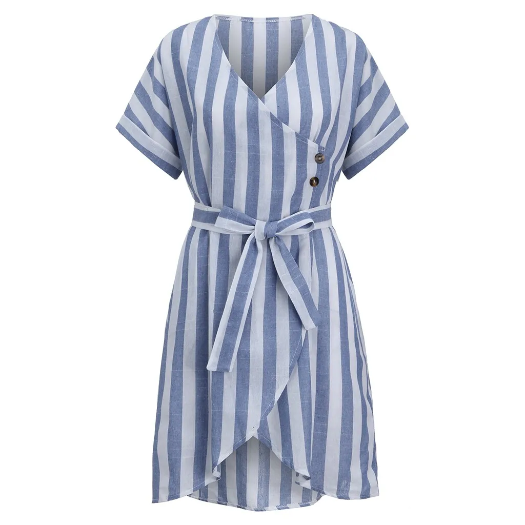 Женское праздничное мини-платье с коротким рукавом и v-образным вырезом, летнее платье в полоску