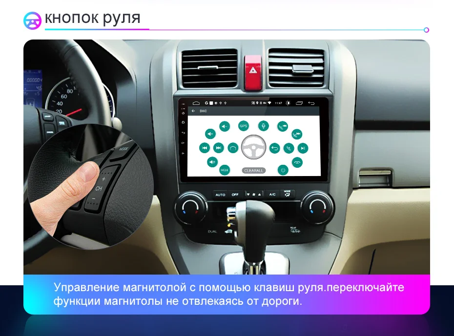 >> Junsun V1 для Honda CR-V 3 RE 2007 -2011 Функция 9-дюймовый 2.5D емкостный экран + четырехъядерный процессор 1.2 ГГц + DDR3 1 ГБ (2 ГБ дополнительно) Flash + 16 ГБ памяти (32 ГБ дополнительно) + Встроенный Wi-Fi (4 ГБ сеть дополнительно) + GPS-навигация (обновление карты, только поддержка бренда Junsun) + управление рулевым колесом + зеркальная связь + Bluetooth + встроенный микрофон + FM / AM + RDS (опция) + поддержка функции USB ADAS DVR + функция Europe DAB + 1080P Vedio Play + HD 1024 * 600 + система контроля давления в шинах >> Язык экранного меню Русский, английский, испанский, итальянский, французский, немецкий, китайский, эстонский, польский, филиппинский, финский, корейский, голландский, хорватский, латышский, литовский, румынский, норвежский, португальский, японский, шведский, тайский, турецкий, украинский, венгерский. >> 24H * 7 Сервисная поддержка В Junsun наша цель - продолжать усердно работать над созданием инновационного аппаратного и программного обеспечения радиоприемника для автомобильного мультимедиа, которое обеспечит вам индивидуальный подход. Мы предоставляем БЕСПЛАТНЫЕ обновления для прошивки, программного обеспечения, карт GPS-навигации.