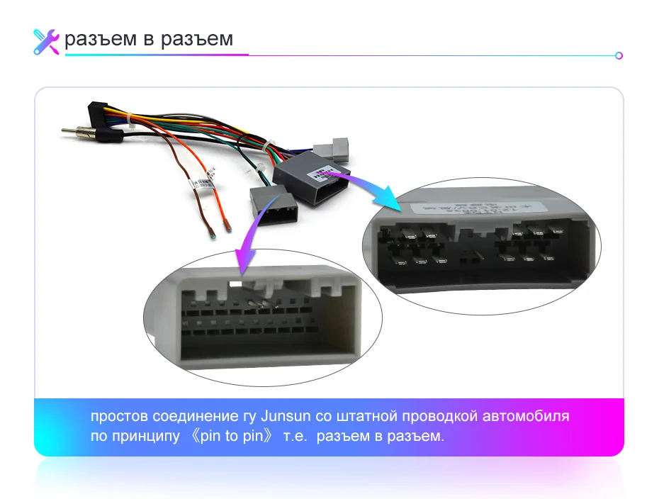 Примечание: если ваше оригинальное радио имеет большой экран, а разъем для кабеля на задней панели такой же, как на картинке, пожалуйста, не покупайте его, он не подходит для радио Junsun.