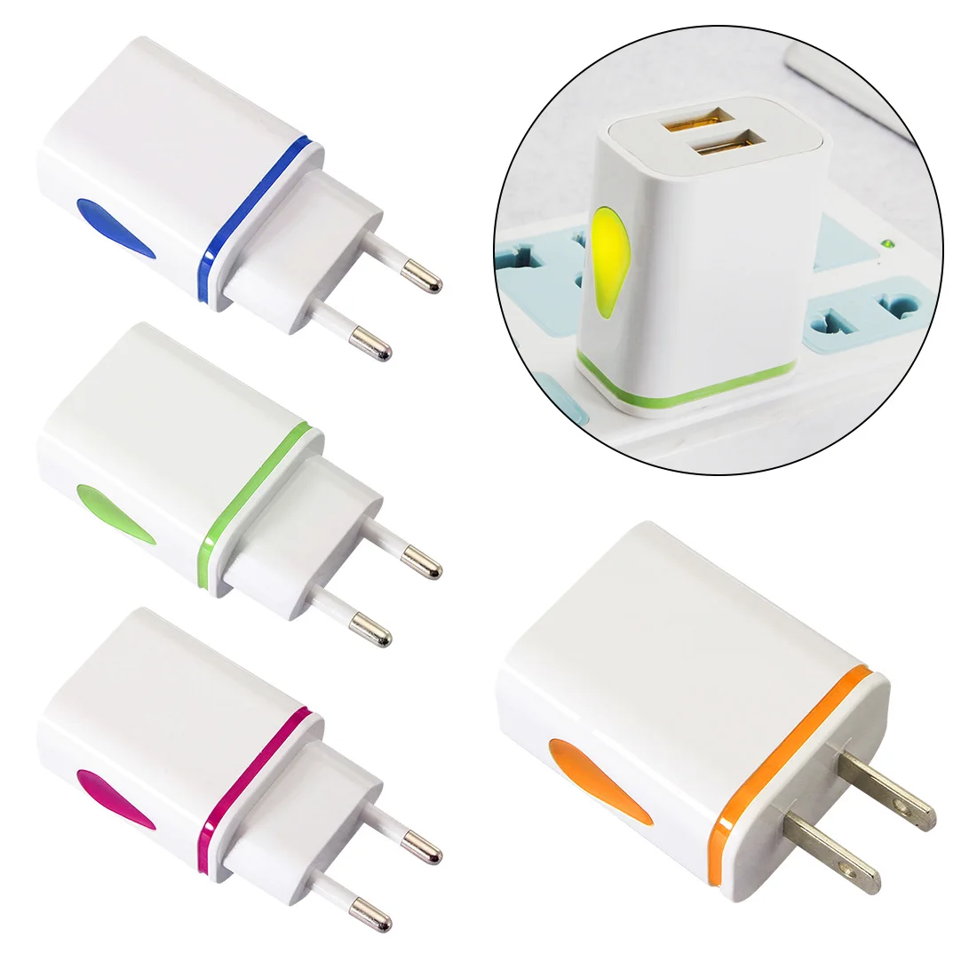 Светодиодный светодиодное светящееся настенное зарядное устройство с двумя портами USB является очень прочным, ультра компактным, универсальным зарядным устройством для смартфонов и планшетов iphone и Android, идеально подходит для путешествий, дома или офиса.