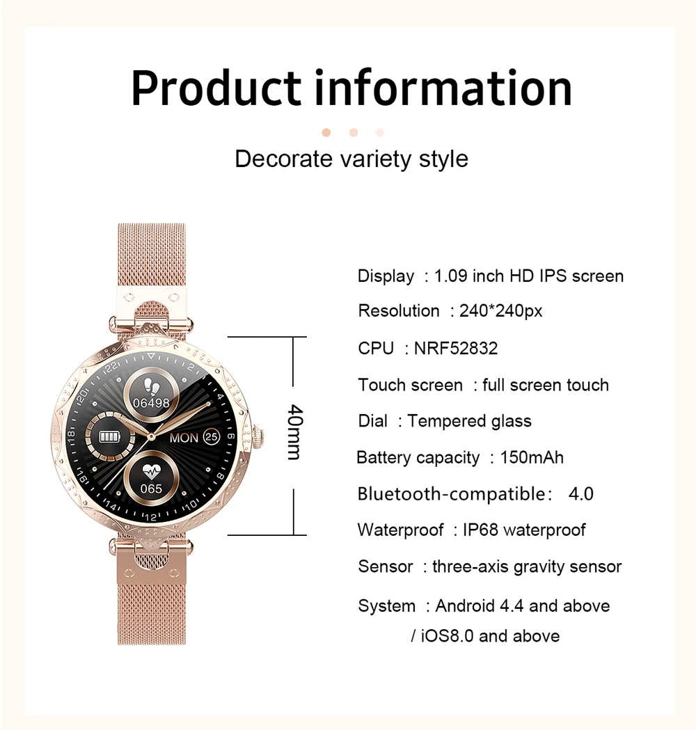 Смарт-часы Размер (мм):40 мм * 40 мм * 11,5 мм