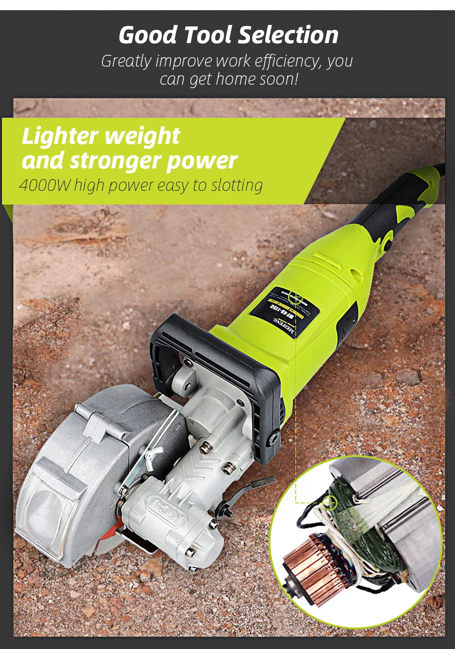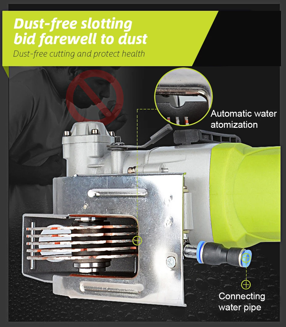 Посылка включает в себя: 1 х Настенный Охотник 1 х водяной насос Пильные лезвия 5x121 мм 1 х 3 м водопроводная труба Адаптер для пылесоса-1 шт. 1 x пластиковая коробка Особенности: 1. Корпус из магниевого сплава, высокая мощность 4000 Вт 2. 360 градусов без мертвых концов 3. Чистка, безопасная в использовании 4. Регулируемая ширина слота 5. Тонкая ручка, простота в эксплуатации